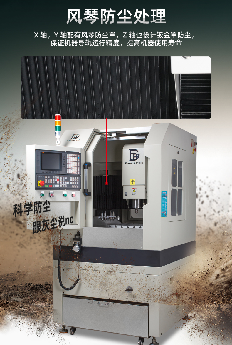 晶研JM4040高精度高光机,配备大理石机身与精密研磨丝杆,确保加工稳定性与精度。自动换刀与宝元控制系统实现高效智能操作。多层过滤系统保障设备持久运行。适用于铝合金、陶瓷、碳纤维等多种材料,满足精密零件加工需求,是制造业的精密之选。