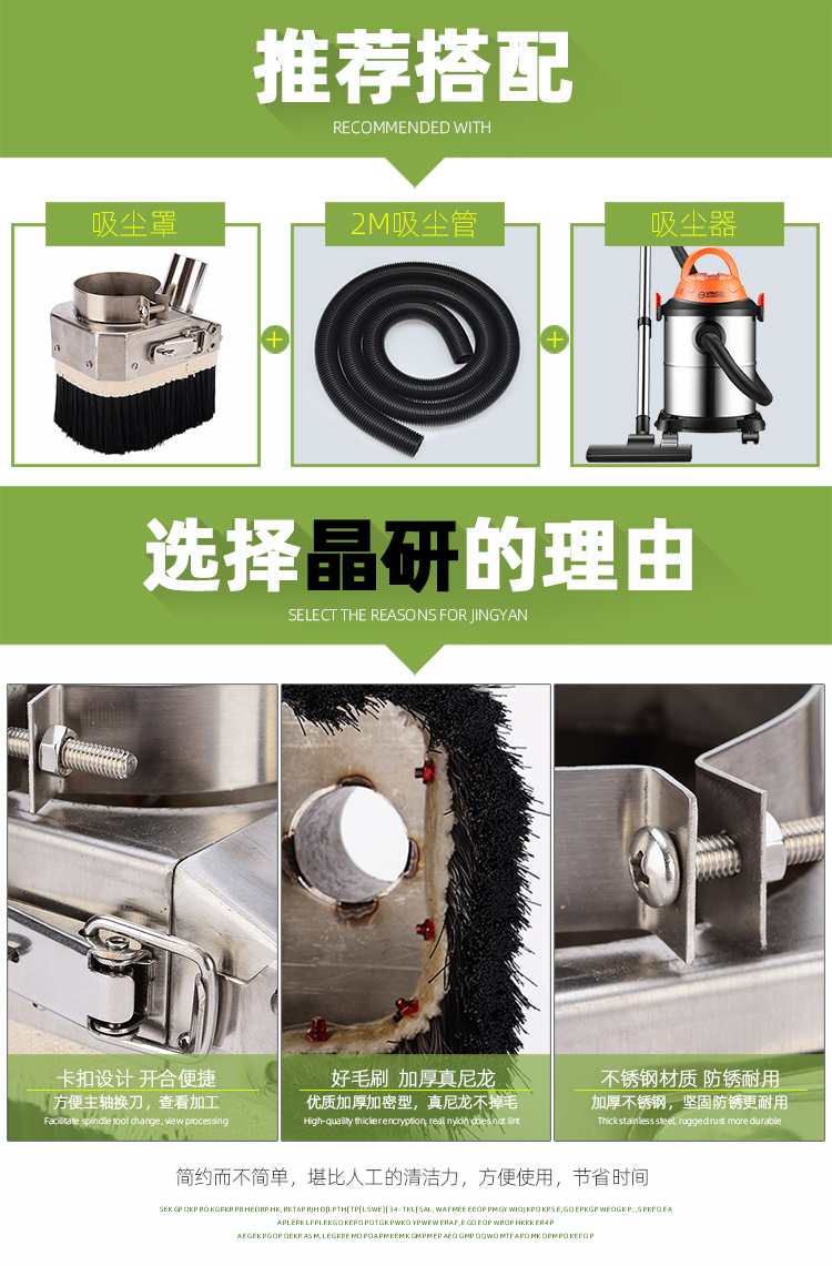 晶研雕刻机专用吸尘罩是一款高效吸尘防水设备,具备六大核心功能。其可开门设计便于操作,便捷卡扣让拆卸更快捷。表面经烤漆处理,耐用且美观。采用不锈钢材质,延长使用寿命。加厚真尼龙材料方便清洗,节约成本。强效毛刷设计,提升吸尘能力,有效清除灰尘。适用于木工、金属和玉石雕刻等多种小型雕刻机,是提升工作环境舒适度的理想选择。