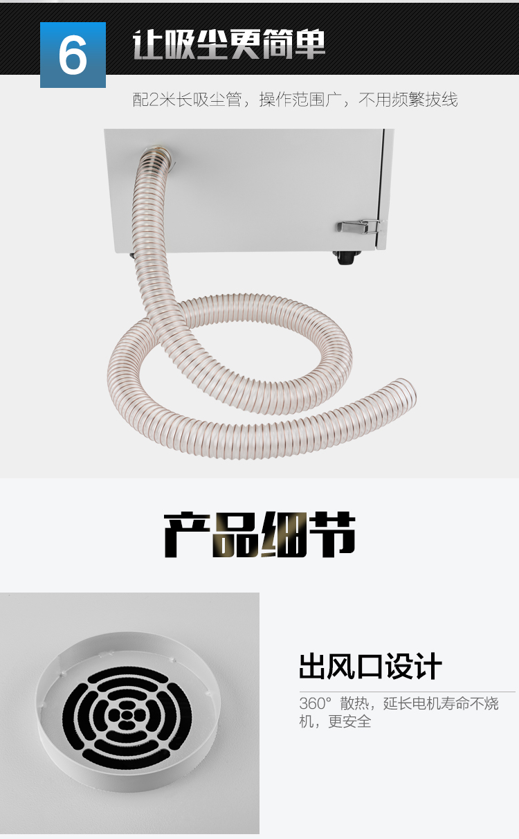 这款工业级静音吸尘器具备多项实用功能。它支持长时间运行,适合工业环境中的持续清洁需求。强力吸尘能力确保了高效清除各种灰尘和杂质。静音低噪设计让操作更加舒适,减少噪音干扰。旋风过滤系统提供强力清洁效果,同时多功能使用适应不同清洁任务。大容量集尘箱方便收集大量灰尘,减少清理次数。这款吸尘器是工业清洁的理想选择,提升了工作效率和环境质量。