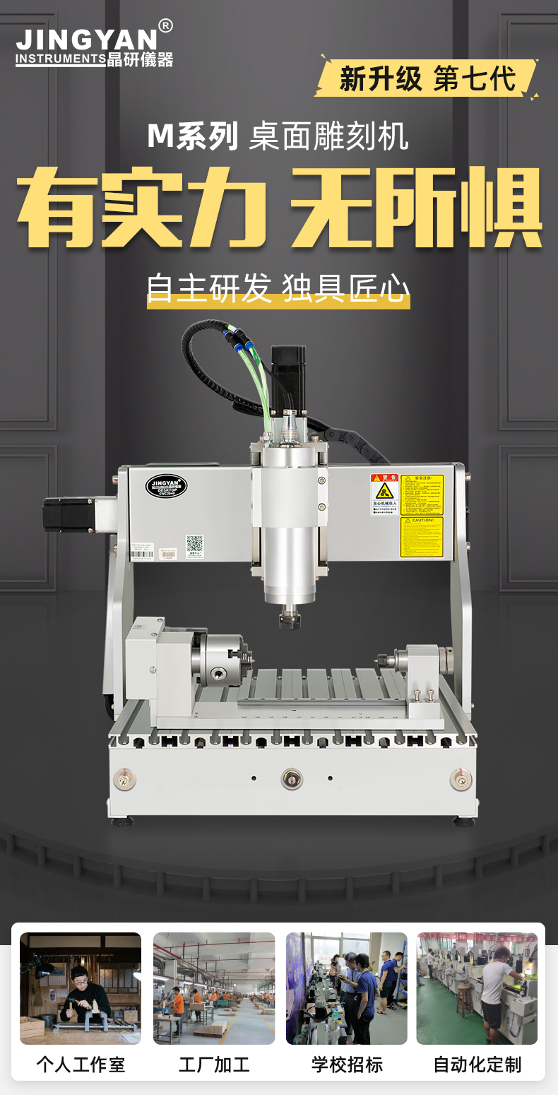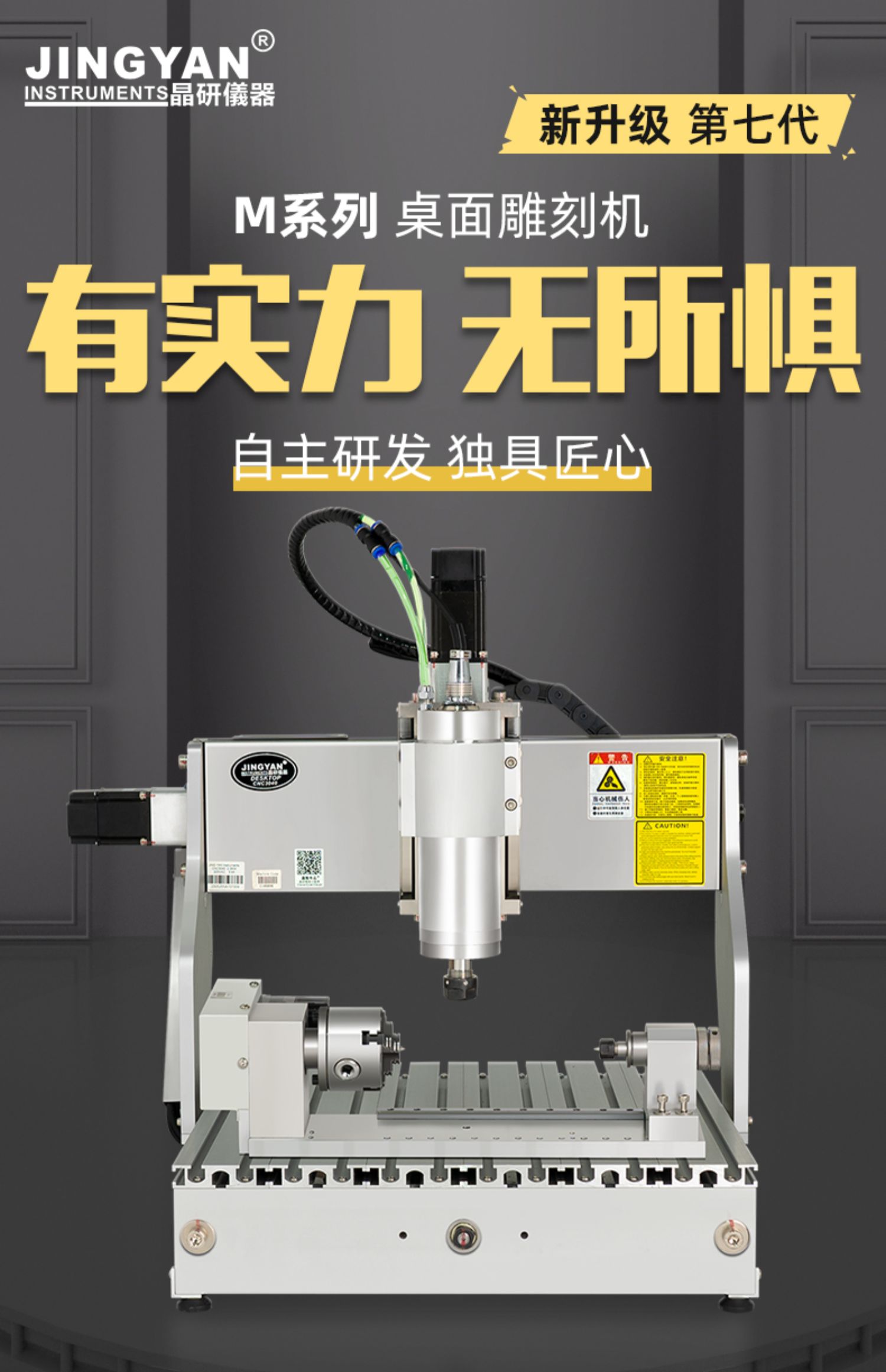 晶研M系列桌面雕刻机提供多种功率选择,适应不同硬度材料加工需求。其高精度编码限位系统、高速闭环电机和智能驱动卡,确保了加工的精度、速度和节能效果。此外,晶智牛云系统和手机小程序为用户提供了便捷的教学和售后服务,使其成为工业应用的理想选择。