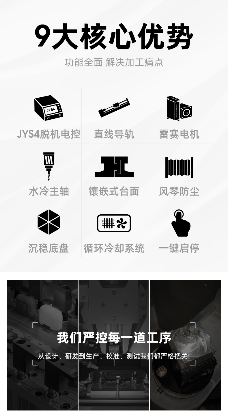 桌面款小型加工设备主打占地少、易排布、高效省人工,可置于大型设备旁协同作业,适用倒角、去披锋、铣水口等工序,支持铭牌雕刻等精细加工,高效便捷、节省人工成本。