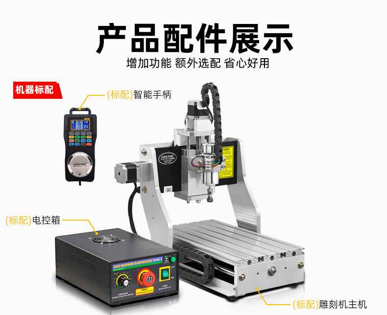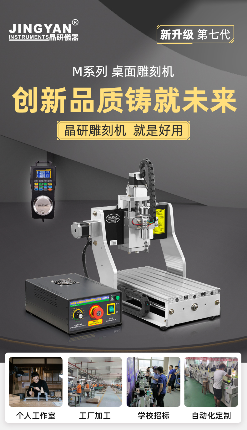 晶研M系列桌面雕刻机提供多种功率选择,适应不同硬度材料加工需求。其高精度编码限位系统、高速闭环电机和智能驱动卡,确保了加工的精度、速度和节能效果。此外,晶智牛云系统和手机小程序为用户提供了便捷的教学和售后服务,使其成为工业应用的理想选择。