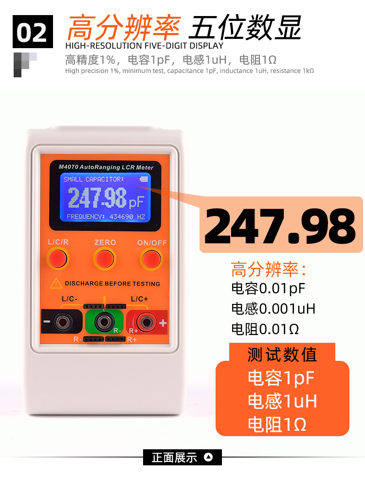 自动量程LCR,大量程测试,锂电池充电,数据采集,手动清零按钮。